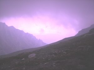 Trecem de Jepi, stâncile devin gălbui și în aer parcă se iluminează cu vapori de sodiu. El tace. Mergem spre Babele? Spre Omul? Spre Peșteră? Spre Piatra Arsă? Spre Caraiman? Spre Thomas Mann? Orice indicatoare dispăruseră brusc. Se auzea ceva bâzâind, ca un roi de albine. Văd surâsul plin de sine al lui Amfiloh și știu că știe unde ne duce. Ne ducea în deșert…Mi-am dat seama de treaba asta abia când începuse simunul. Cum era posibil? Ne învăluia nisipul, burnusuri de nisip ne fâlfâiau pe umeri, totul venea din toate părțile. La început crezusem că e vorba de zăpadă și încercam să beau „fulgii”, de sete. Palmieri trecuseră pe lângă noi, însă știam că în mediul acesta de jepi totul putea fi doar un miraj. Ne priveam cum arătam ca niște cămile cu cocoașe, ne scrâșneau ochii de nisip.