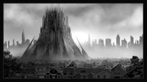 Imaginea unui munte artificial, un monument modern al aspirațiilor umane de a ajunge la cer. Creație grafică a lui Alex Ruiz.