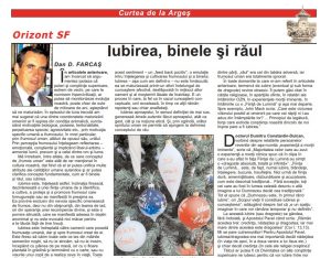 Printre autorii paginilor din această ediție a revistei se află bănățeanul Dan D. Farcaș, cercetător al fenomenului O.Z.N. și al civilizațiilor extraterestre. Dan Farcaș publică în cea de-a douăzeci și noua pagină a revistei, intitulată „Oriozont SF”, un eseu ce poartă titlul „Iubirea, binele și răul”, eseu în care, printre altele, ridică un semn de întrebare cu privire la conceptul „frumos uman” și-l consideră ca fiind „atât de rar menționat în cultura noastră”. Autorul eseului consideră că acest concept „ar putea unifica multe atribute ale calităților umane autentice”, și clarificarea unor concepte umane de bază, cum ar fi binele, răul, iubirea.