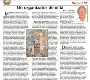 Eseul „Un organizator de elită” este unul de apreciere față de activitatea de animator cultural desfășurată de profesorul Cornel Secu (președinte executiv, Consiliul Director al Asociației Române a Cluburilor și Autorilor de Science-Fiction), autorul articolului, distinsul critic literar timișorean, Mircea Opriță, președintele Consiliului Director al Asociației Române a Cluburilor și Autorilor de Science-Fiction (ARCASF) considerând că „În ciuda unor periodice atacuri cenacliere la adresa sa, Cornel Secu este o figură greu de contestat a mișcării SF românești, instalat temeinic, (dar nu exclusiv) în spațiul cultural românesc”.