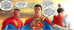 Autorii au pus un accent nemaiîntâlnit până atunci ( 2005) în a arăta diferenţa destul de mare dintre Clark Kent şi Superman, iar câteva planse de la sfârşitul cărţii subliniază dorinţa lor de a sublinia vizibil transformarea care are loc. Kent este un om grăsuţ, cu burtă, umerii înguşti şi lăsaţi, aplecat, împiedicat, dar salvând viaţa cuiva de fiecare dată. Interesant că pe parcursul volumului Superman nu da decât vreo 10 pumni ( exceptând finalul), nu se prea luptă, este foarte cerebral şi efectiv reuşeşte să treacă peste o mulţime de situaţii limită ocolindu-le cu eleganţă.